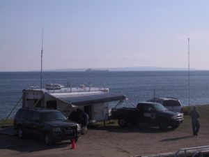 Our usual Field Day site is at the Icebreaker Mackinaw Maritime Museum Ship. The picture above says it all. This view is from the Starboard side of the Mackinaw looking across the CCECPSCO communications trailer toward Mackinaw Island. 2021 was wet and soggy, but a group of about 8 had a great time with a couple of surprise guest operators from North Carolina.